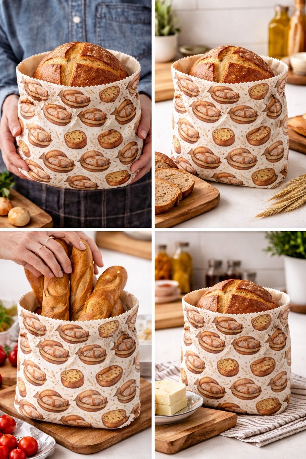 ⸻ 🌾 Nasıl Çalışır? Balmumu kaplı doğal yüzey, ekmeğin etrafında hafif bir koruyucu bariyer oluşturur.