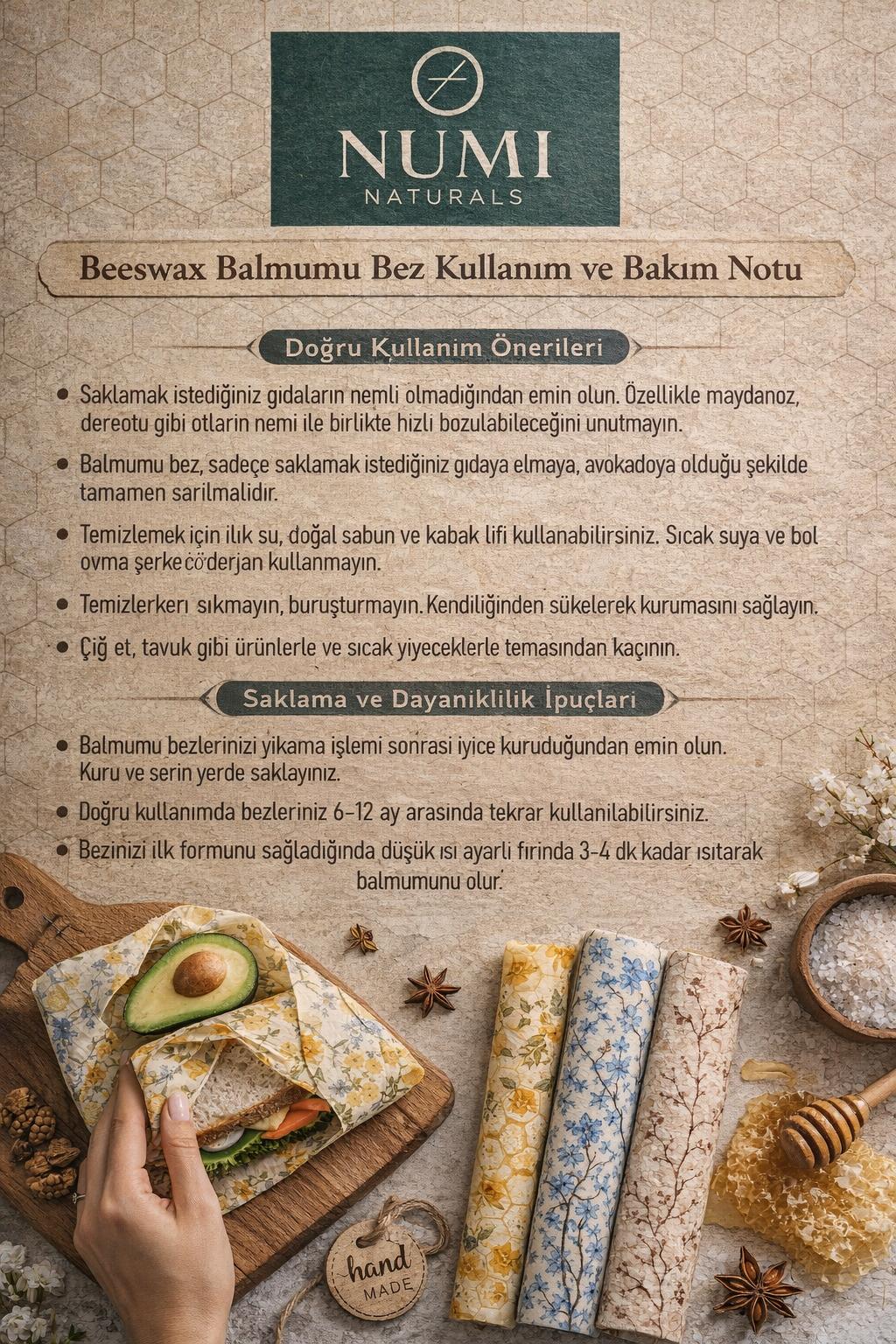 🌿 NUMI NATURALS – Balmumu Gıda Saklama Bezleri | Premium 3’lü Set