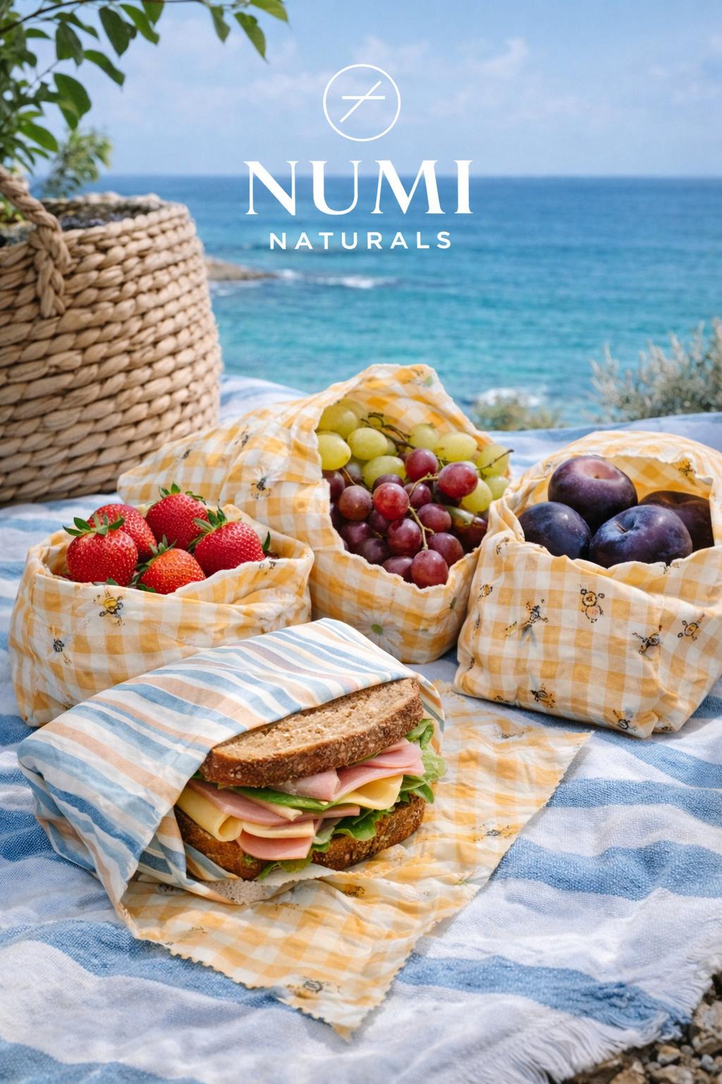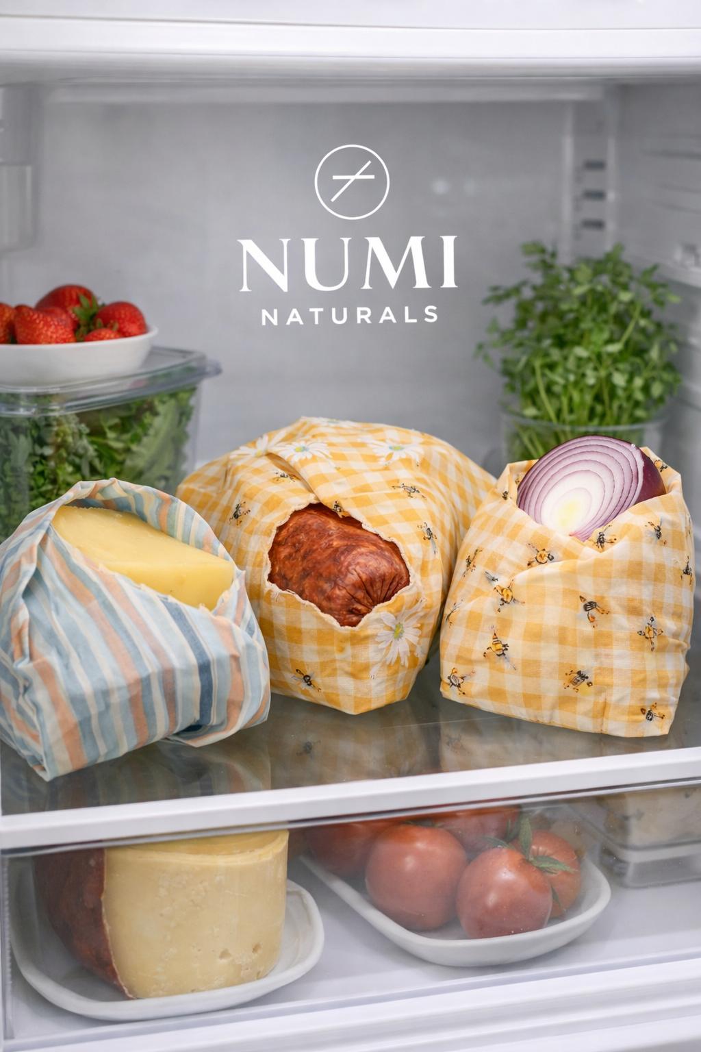 🌿 NUMI NATURALS – Balmumu Gıda Saklama Bezleri | Premium 3’lü Set Numi Naturals’in özel seçkileriyle hazırlanan bu premium balmumu gıda saklama bezleri, benzersiz desenleri ve doğal içeriğiyle mutfağınıza hem estetik hem de sağlıklı bir saklama deneyimi sunar.; Her bir bez; %100 pamuk kumaş, doğal balmumu, doğal çam reçinesi ve saf jojoba yağı kullanılarak özenle hazırlanır.