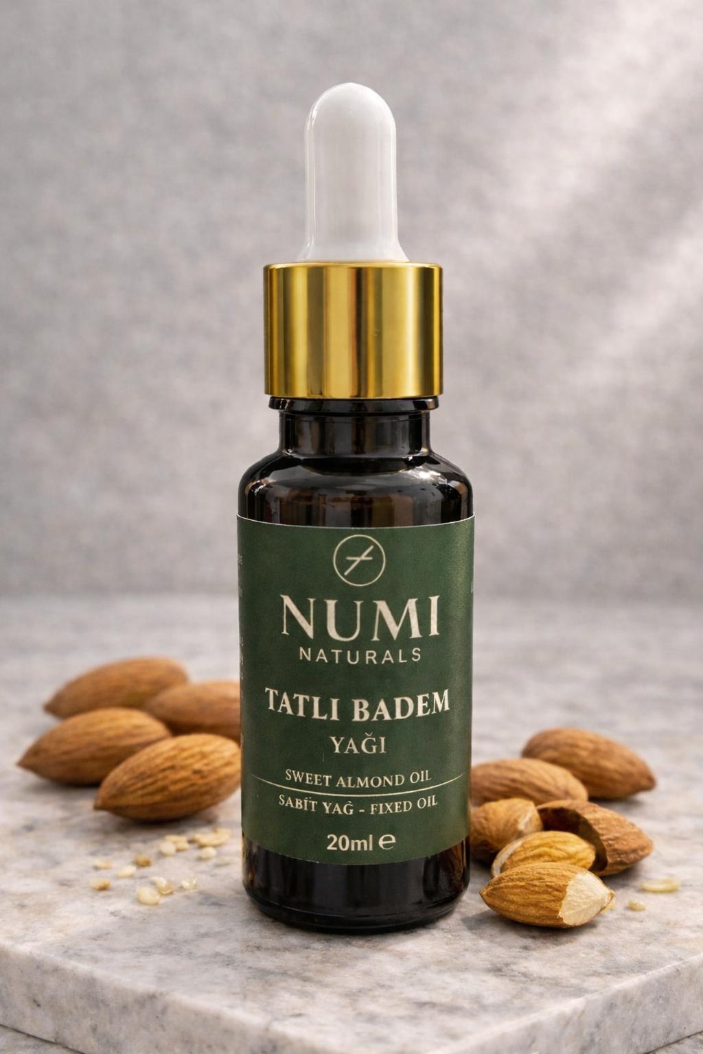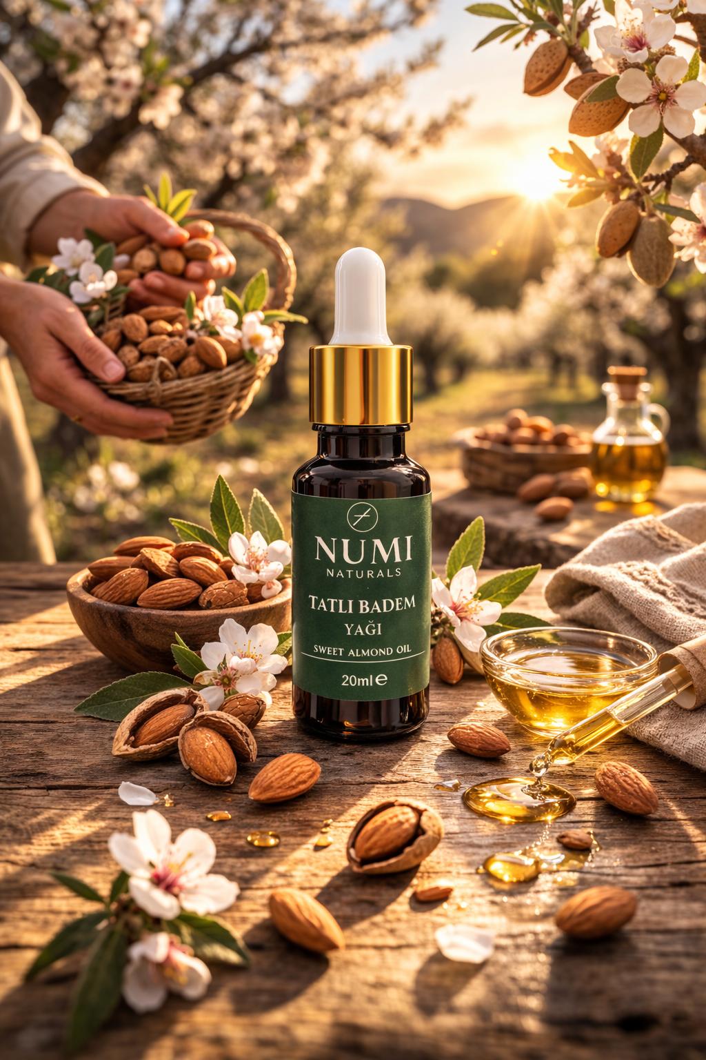 NUMI Naturals Tatlı Badem Yağı, badem çekirdeklerinden elde edilen doğal ve besleyici bir bitkisel sabit yağdır. Hafif ve kolay emilen yapısı sayesinde saç, cilt ve kişisel bakım rutinlerinde sıklıkla tercih edilmektedir.